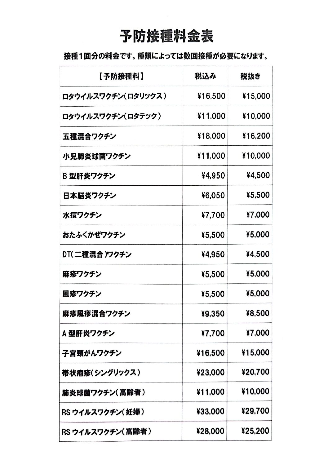 2026年4月から、予防接種の料金が一部変更になります。ご確認の上、ご予約お願いいたします。
